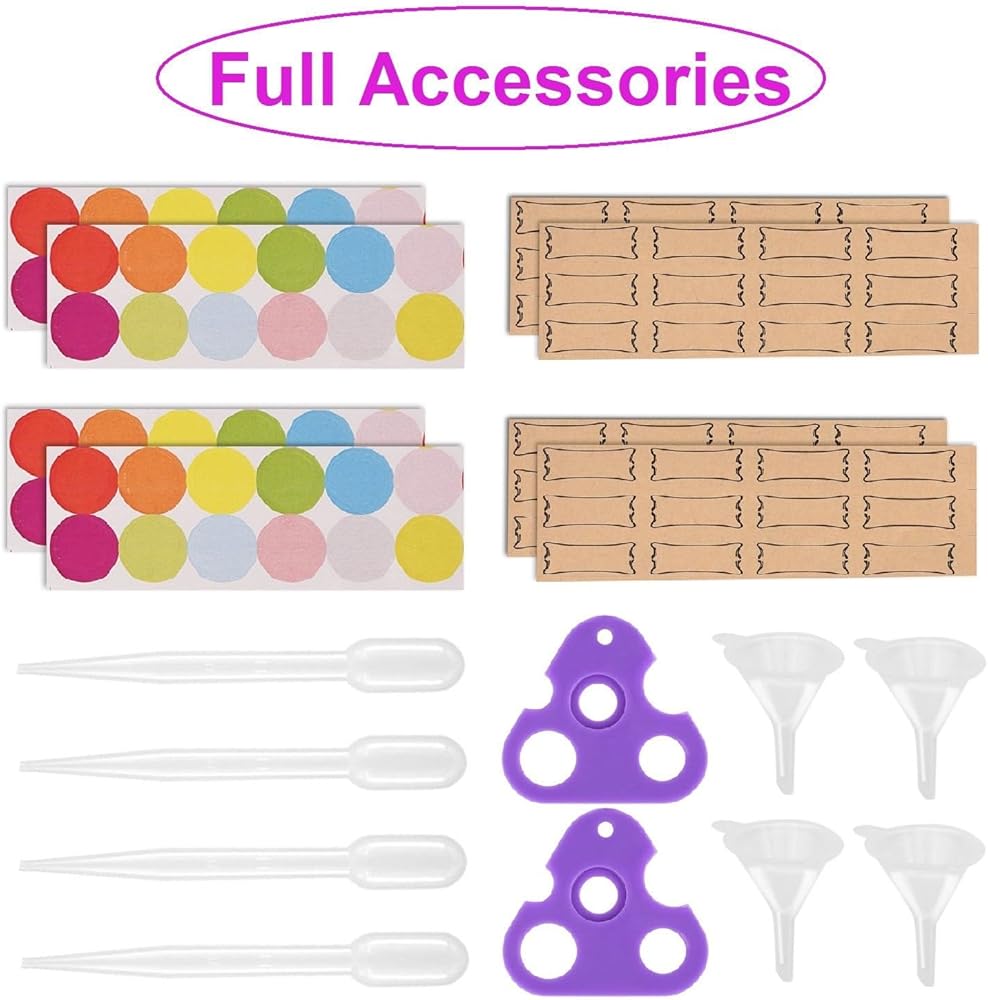 A Must Have Tool: You will get 384 glass roller bottle labels to mark and classify essential oils, 8 Opener make the roller bottle can be easily disassembled and refilled, 16 Funnels and 16 Droppers are provided to fill essential oil easily. And our essential oil roller bottles with stainless steel roller balls and caps, so roller on bottles are reusable.