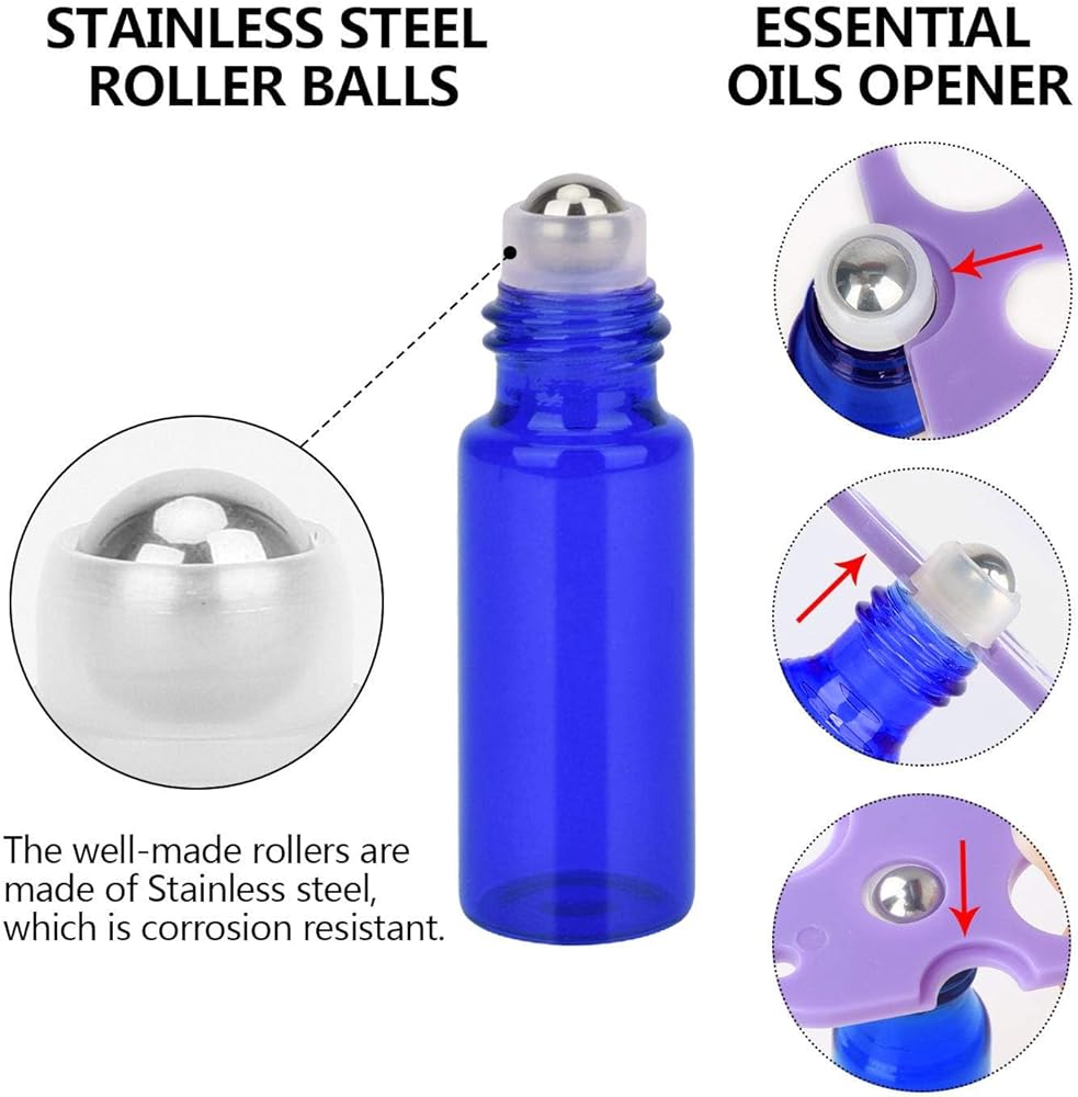 Stainless Steel Roller Balls: The well-made roller balls for essential oils are made of stainless steel, which is corrosion resistant. The roller on bottles easy to apply the oil evenly, bring better skincare effect. With our essential oil opener, the essential oil roller bottles can easily be disassembled and filled. The tightness of blue roller bottles can prevent any sort of leakage.