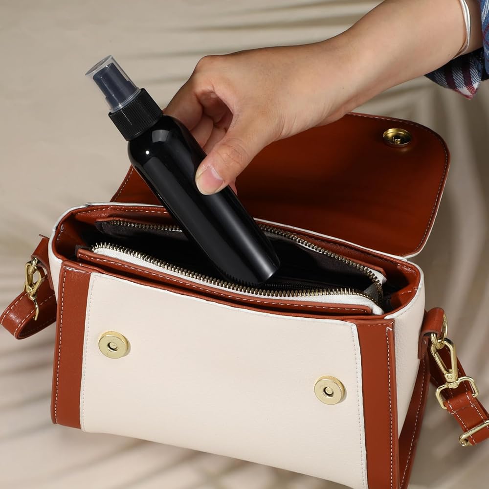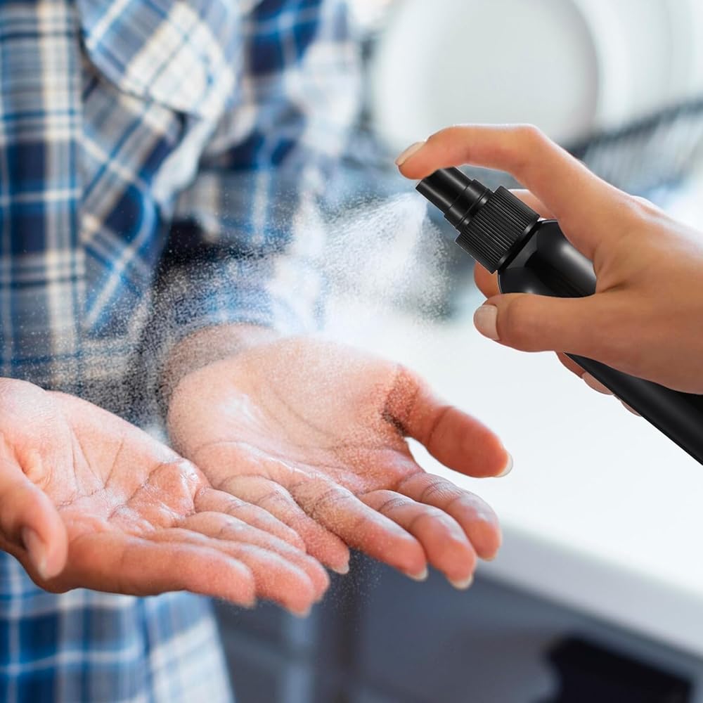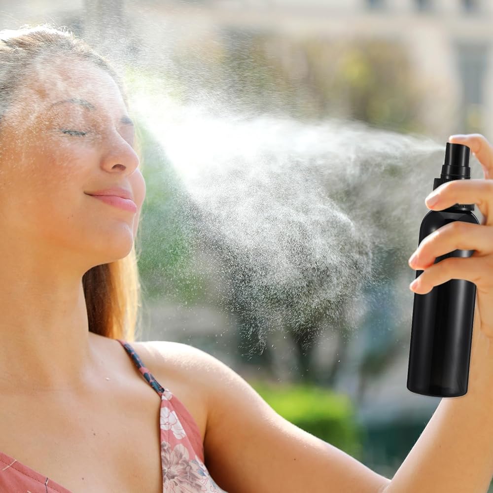 These black spraying bottles are designed with ergonomic nozzle and the spring-loaded button, just press on the pump slight, the fine mist will spring out.