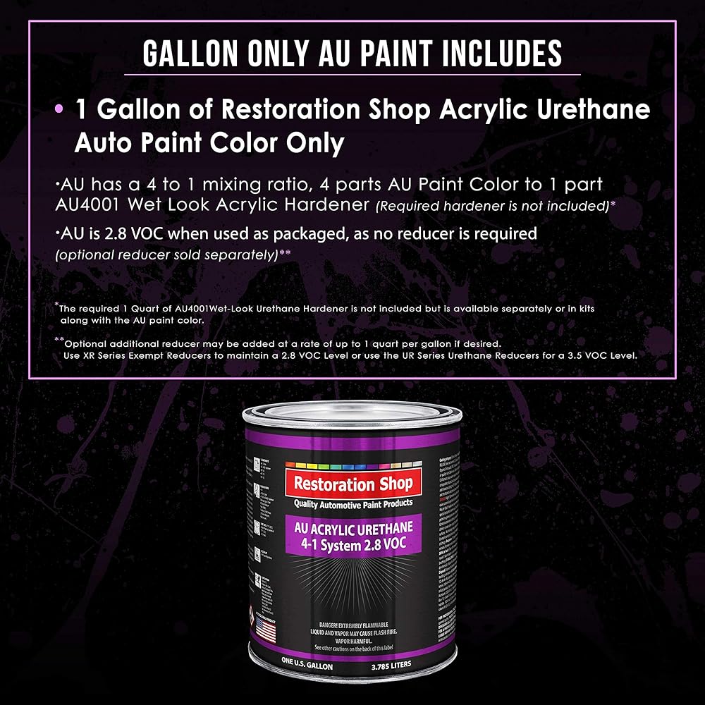 1 Gallon of Restoration Shop Acrylic Urethane Auto Paint Color Only. No hardener is included with this gallon of paint color, but hardener is required to be mixed with the paint color before it can be sprayed or used.