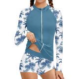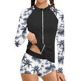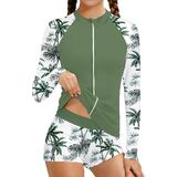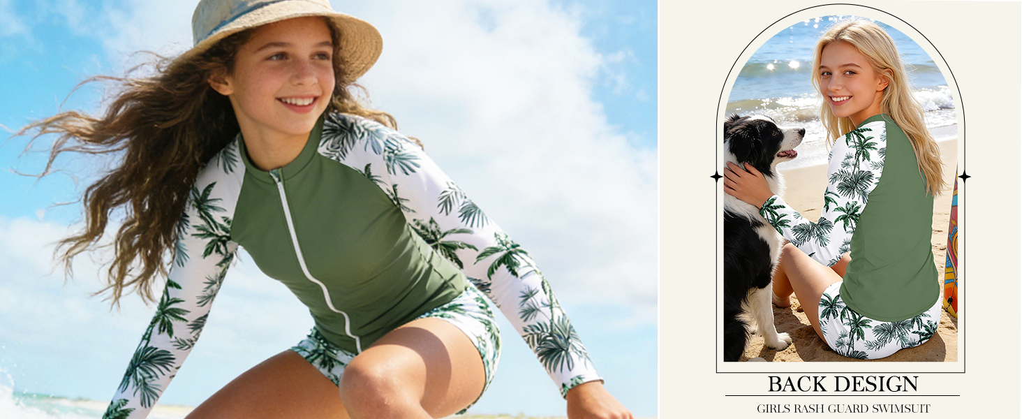 Stylish Design - Girls 2 piece rashguard set, long sleeve tropical print raglan design, classic crew neck, full zipper for easy on and off swim shirts, match with elastic waist tropical print swim shorts, stylish, cute and durable girls swimsuit. Whether splashing in the waves or surfing, your little one will feel confident and happy. The girls two piece swimsuits making your little princess stand out on the beach or in the pool