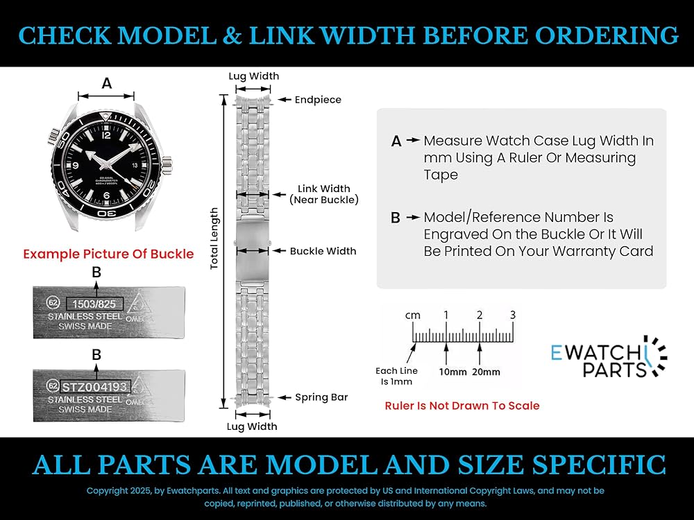 VERIFY YOUR WATCH MODEL & MEASURE THE CORRECT SIZE USING A RULER Watch Parts Are Model and Size Specific. Please Verify Compatibility Before Purchasing.