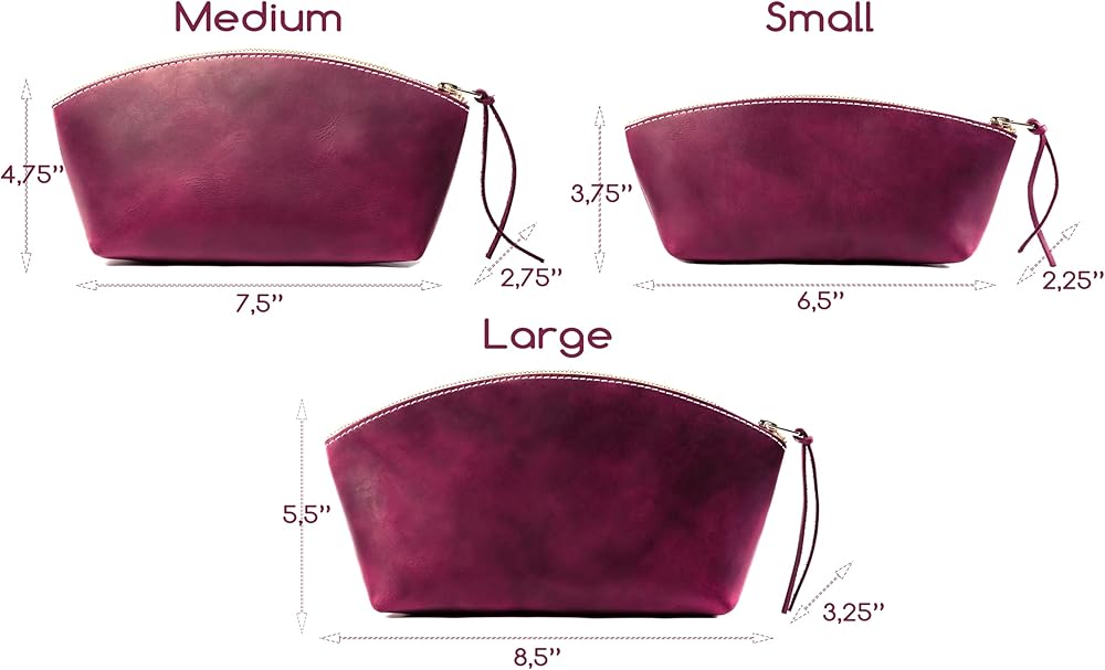 PERSONALIZED genuine leather makeup bag available in following sizes: