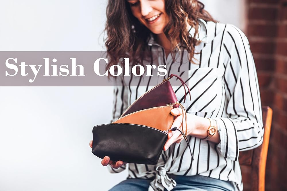 Unique makeup bag exemplify Vintage elegant style. It is designed and handcrafted in Washington using true craftsmanship that allows leather make up bag to last a lifetime. This womens makeup bag is crafted of 100% genuine leather with natural texture! The superior finish gets even better with age. If you fold or scratch it, you create own distressed style that can be faded away by rubbing it with a wet cloth.
