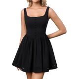 Short sleeve dress for women, summer mini dress, a line dress, square neck dress, invisible zippers, decorative buttons, the exquisite lace hem adds a delicate touch to the overall design, Suitable for casual occasions or graduation ceremonies