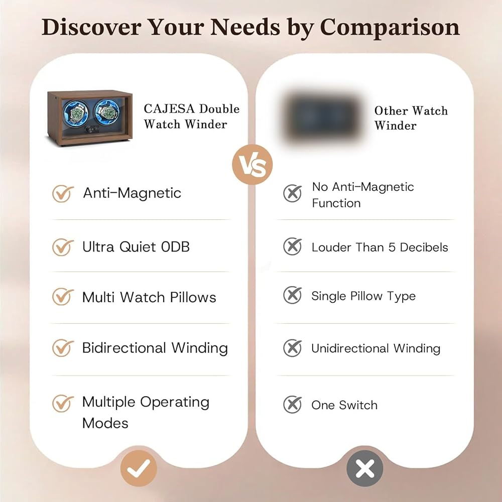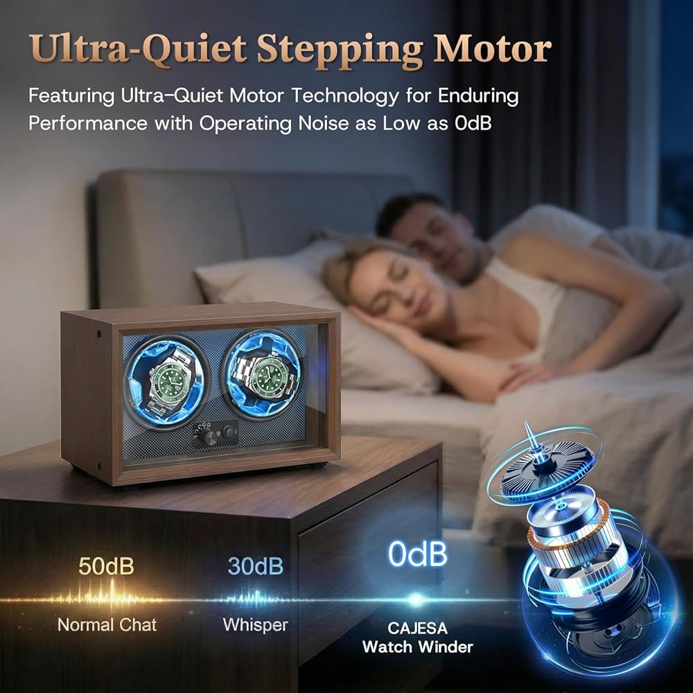 Quiet Automatic Watch Winder with Precision Motor:This automatic watch winder is powered by a precision motor designed for smooth and quiet operation. The watch winder box rotates your automatic watch continuously to keep it wound and ready to wear. Suitable for bedrooms, offices, and display cabinets where a quiet watch rotator is preferred.