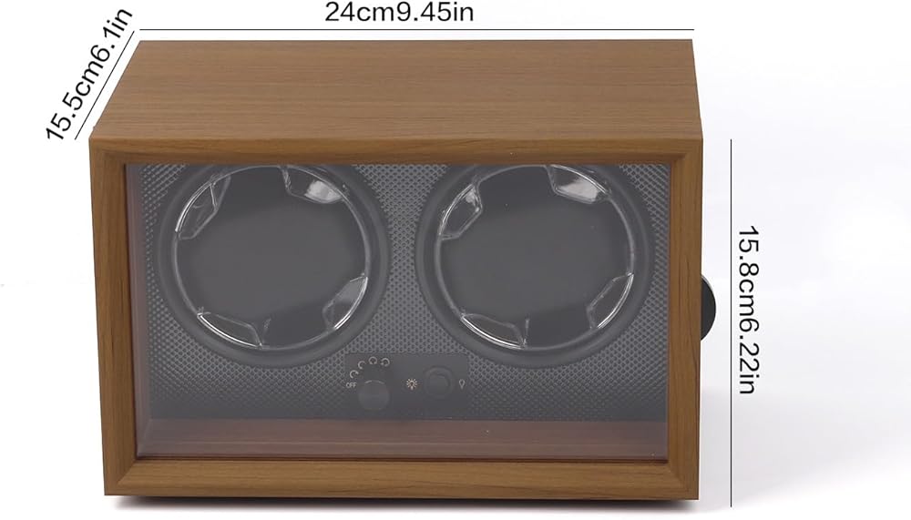 Walnut Grain Watch Winder Display Case:Designed with a walnut wood grain exterior and clear window, this watch winder display case combines a watch storage box and a rotating automatic watch winder. The transparent lid allows the watch to remain visible while the watch winding box operates.