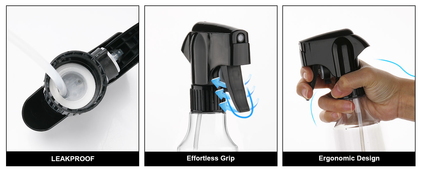 MULTIPURPOSE USE: From misting plants and styling hair to DIY cleaning sprays (water/vinegar mix), this all-purpose water spray bottle for hair and home tasks is your go-to tool.Seize control over your hair care with this continuous spray bottle for hair. The streamlined design of all our spray bottles mist sprayer ensures a comfortable grip for easy use, giving a professional touch right at home