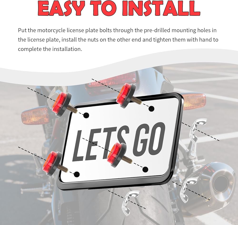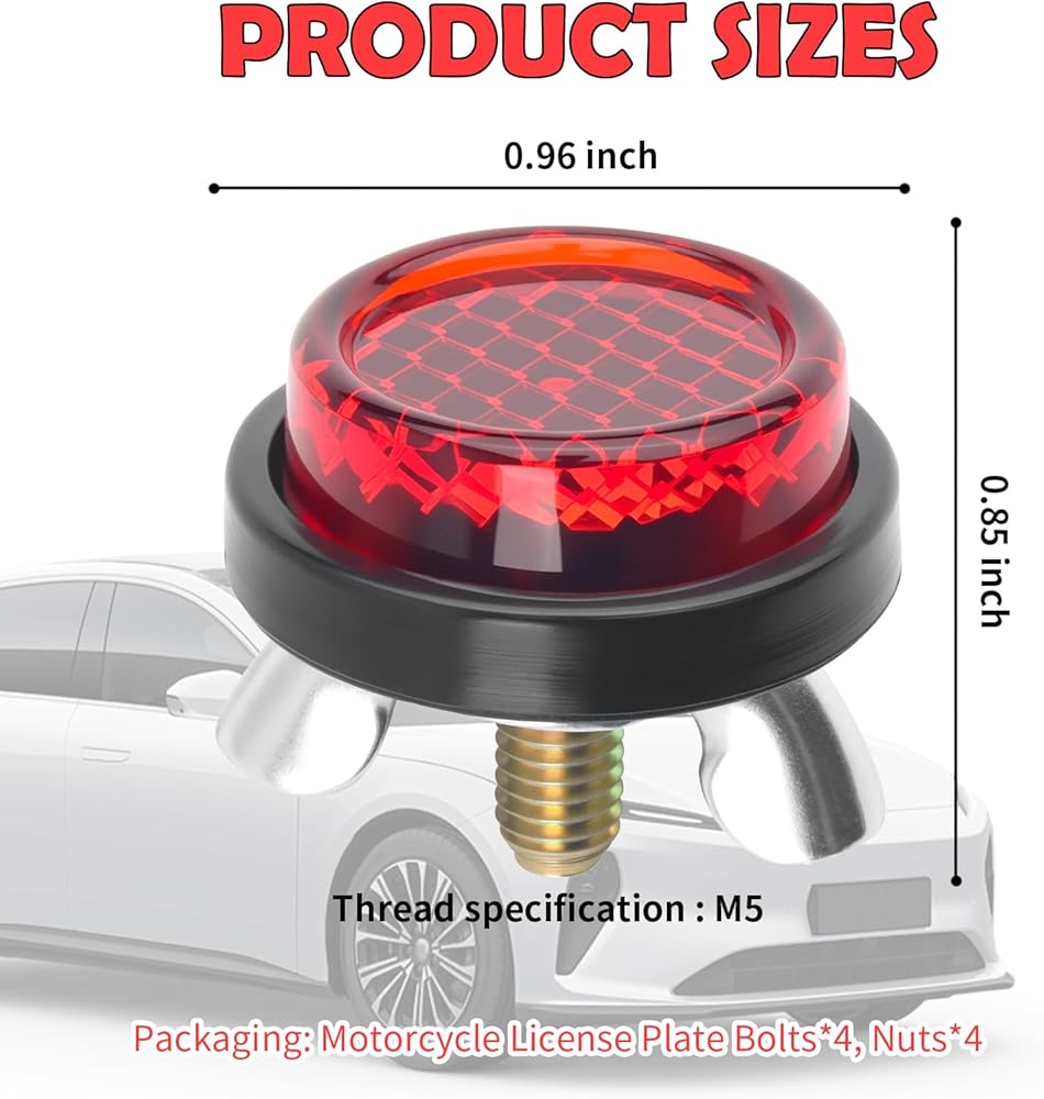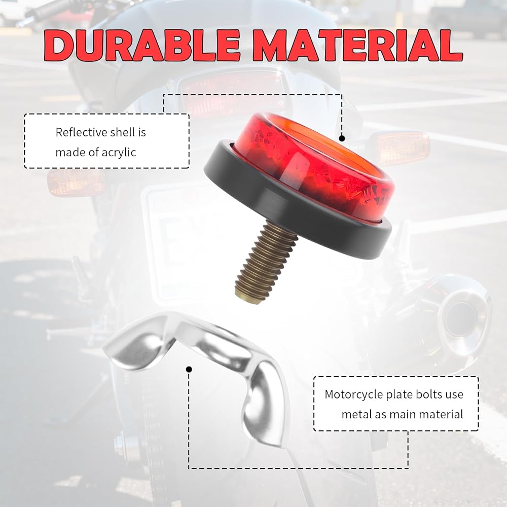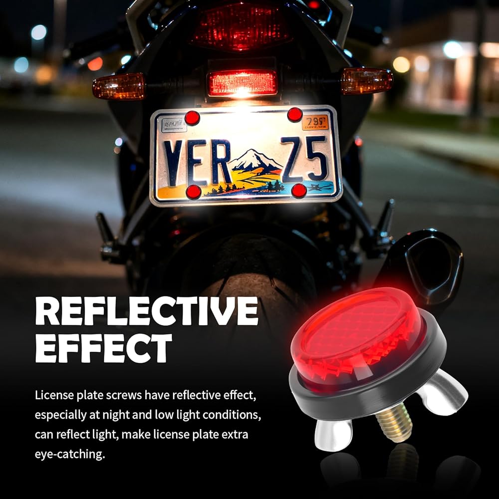 REFLECTIVE MOTORCYCLE LICENSE PLATE BOLTS, MORE SECURE NIGHTTIME DRIVING, COMFORTABLE DRIVING EXPERIENCE
