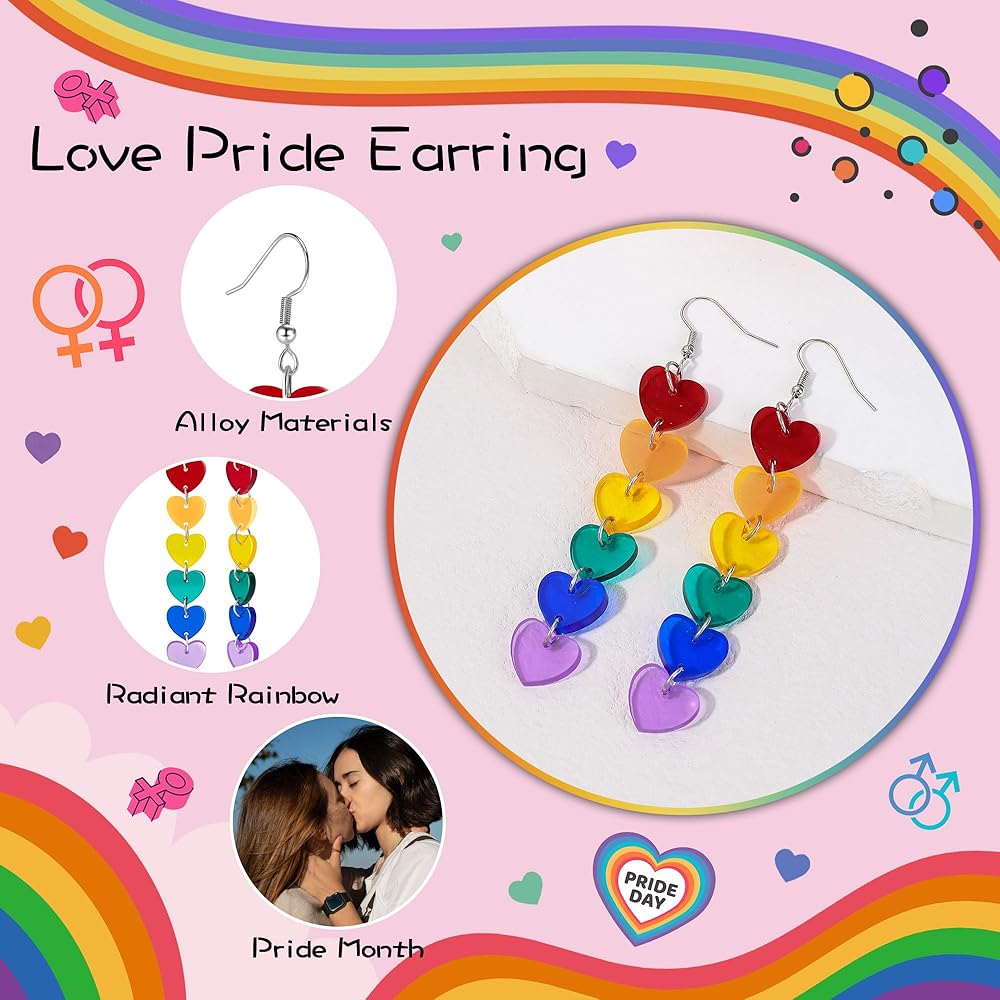 • Love Pride Earrings: Join the celebration of Pride Month with our heart-shaped earrings, a symbol of love and acceptance for all members of the gay, lesbian, bisexual, and transgender community.