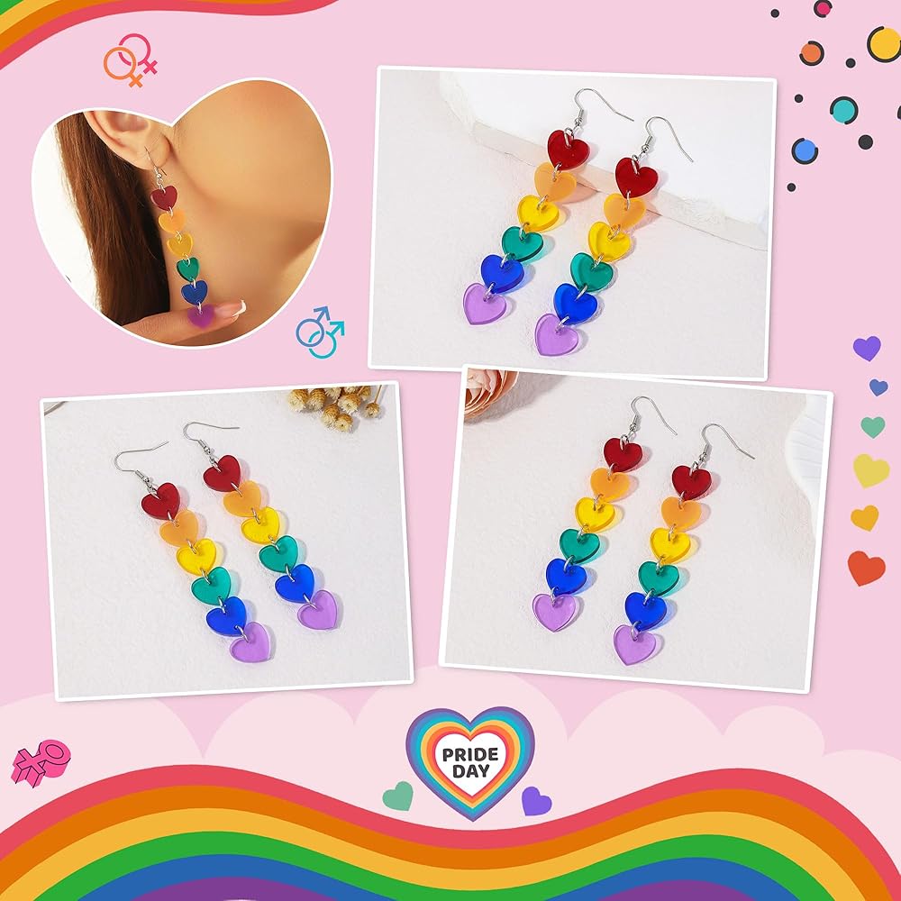 • Lightweight Design: Made from premium acrylic and alloy materials, these heart-shaped earrings are feather-light, ensuring you can express yourself with comfort throughout the day and at various Pride events.
