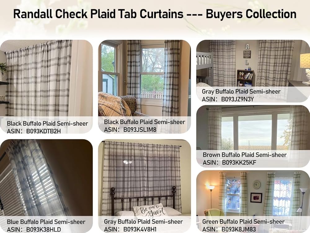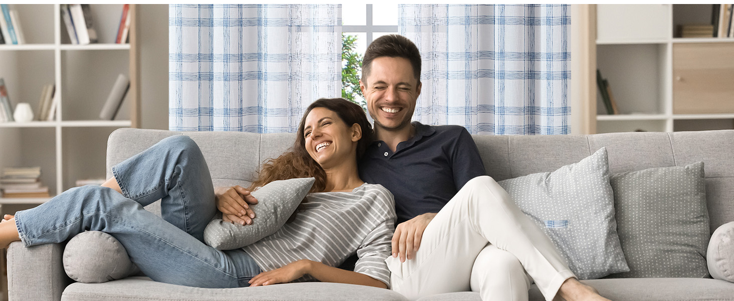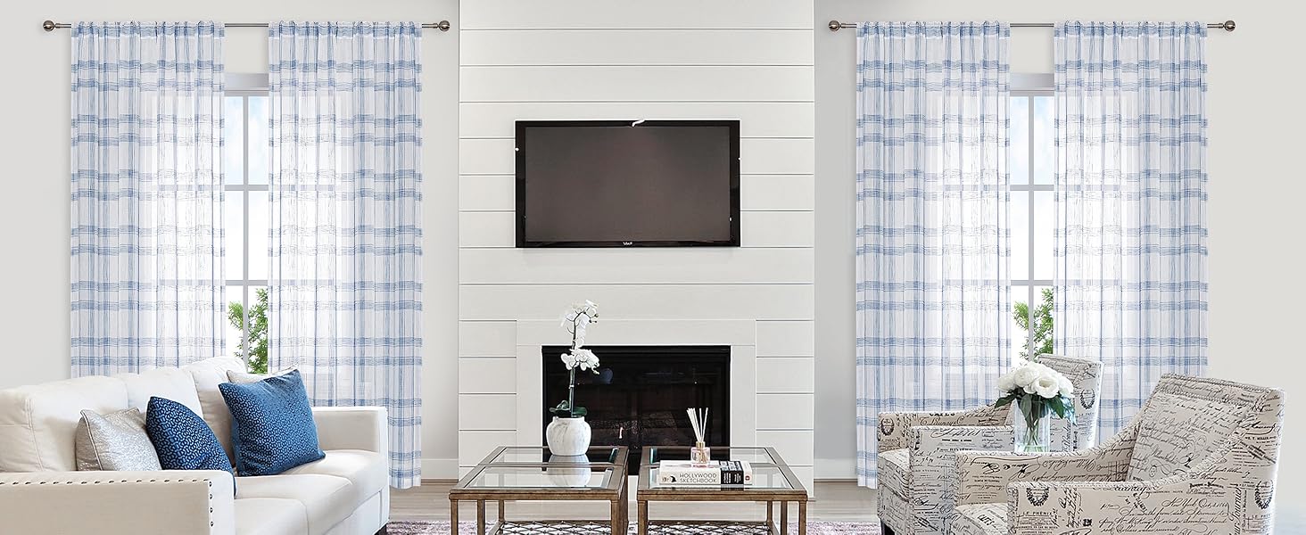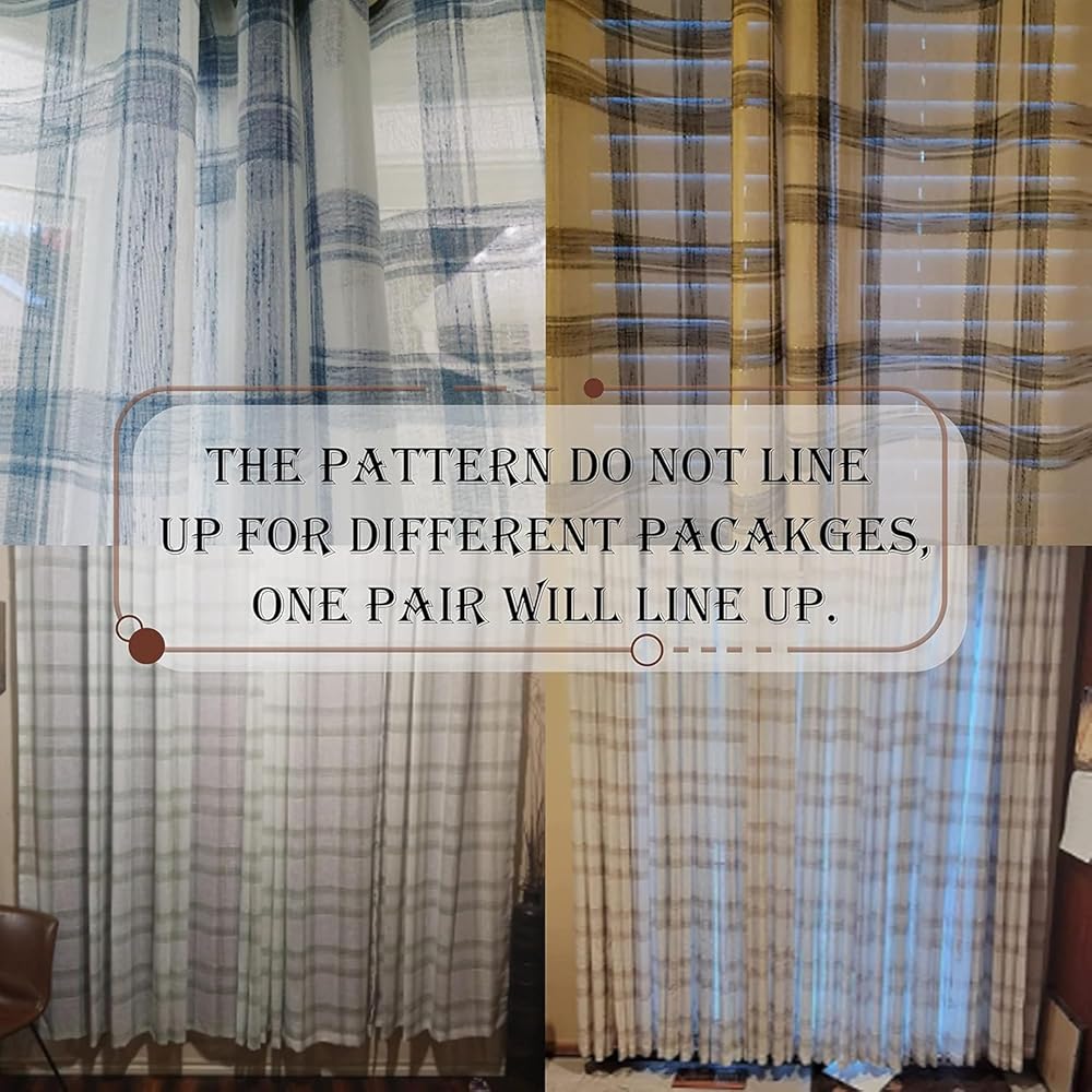 Randall Buffalo Plaid Semi Sheer Curtains for Living Room Linen-Look Geometric Light Filtering Dining Room Window Drape for Farmhouse Bedroom Study Room,Blue/White,54x84 inch Long,2 Panels