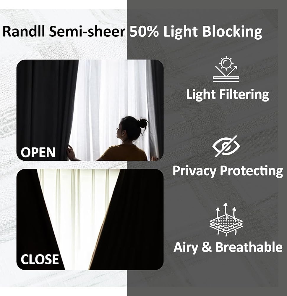 Soft Light Filtering & Layered Privacy: The semi‑sheer linen gently diffuses sunlight while maintaining a comfortable level of privacy. Its airy texture adds a touch of understated elegance and warmth to any room.