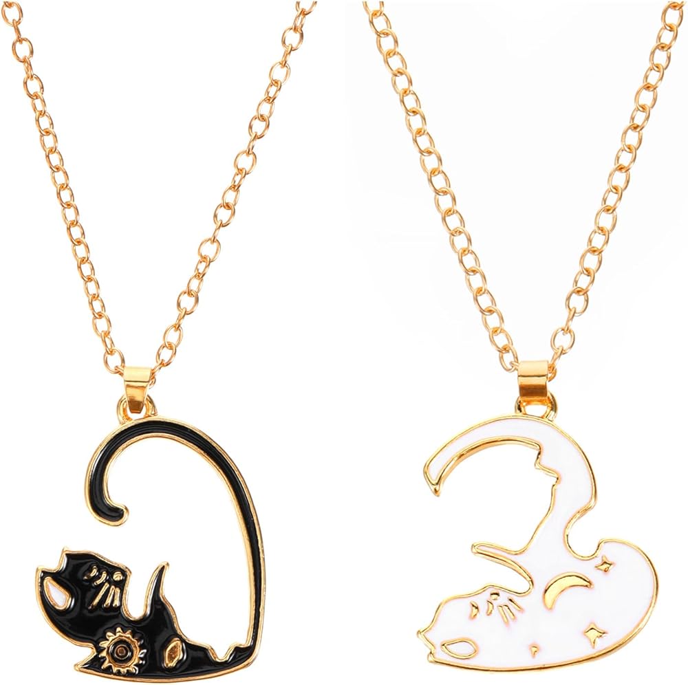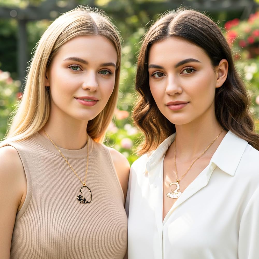 【Black and White Cat Friendship Necklace】:This cat jewelry gift is a versatile accessory that can be worn with any outfit, making it a thoughtful choice for matching necklaces for best friends.