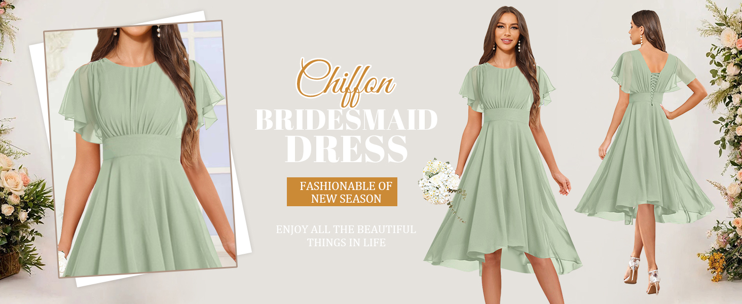 • Knee Length Bridesmaid Dresses: Scoop neck bridesmaid dresses are made of floral chiffon, it's most ideal for our Summer, Fall, Winter, and Spring weddings, ruffled chiffon formal dresses with sleeves are the best choice for bridesmaid, this boho short bridesmaid dresses are appropriate for any wedding in its modest yet stylish look