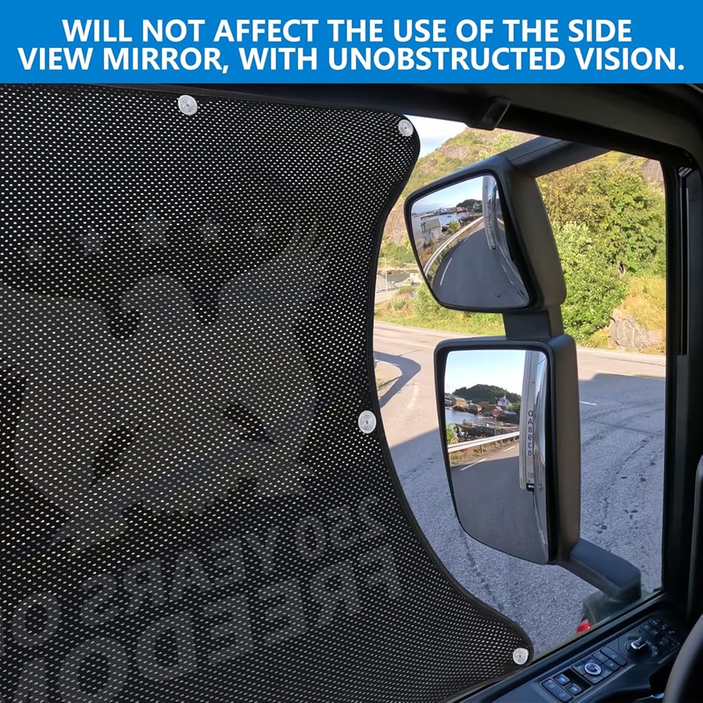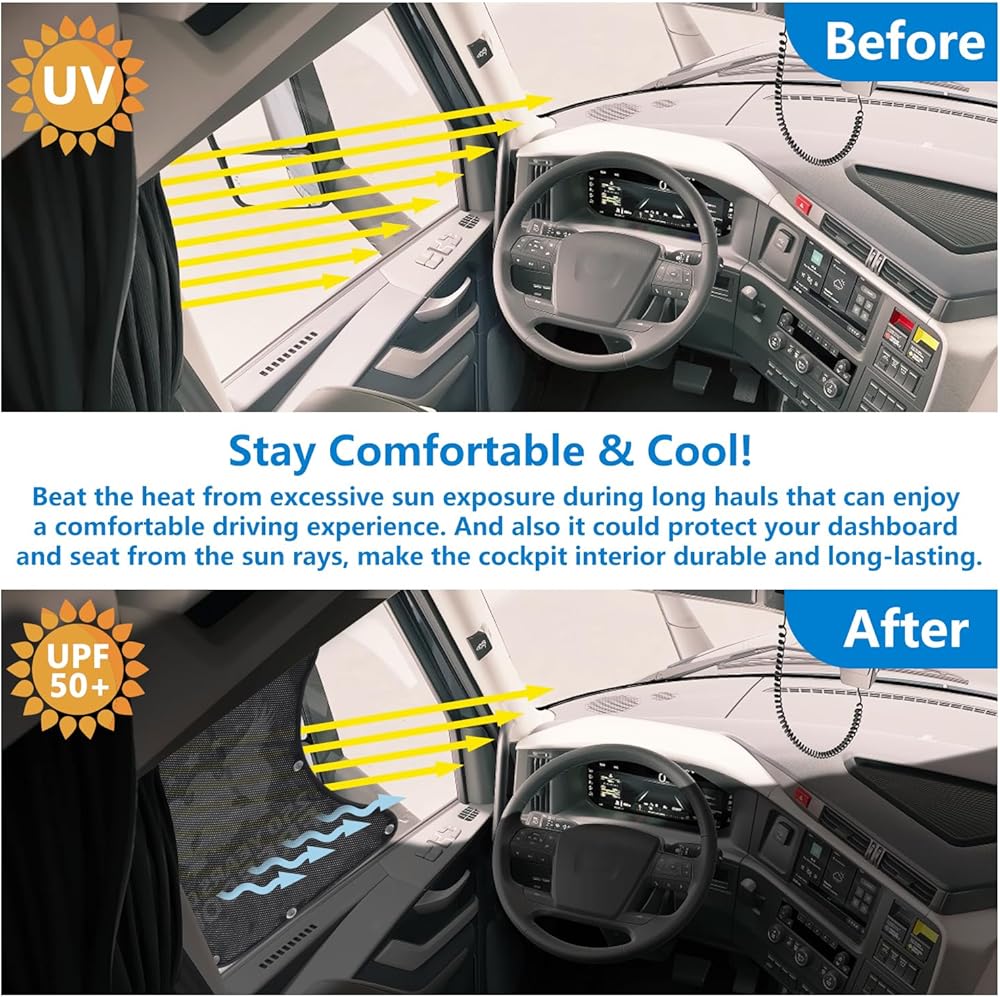 Compatible with Semi Truck: Truck window sun shades are compatiable with Volvo VNL, International Trucks, and Freightliner. Whether you are an experienced truck driver or a RV enthusiast, our side window sunshade is a must-have accessory for your vehicle