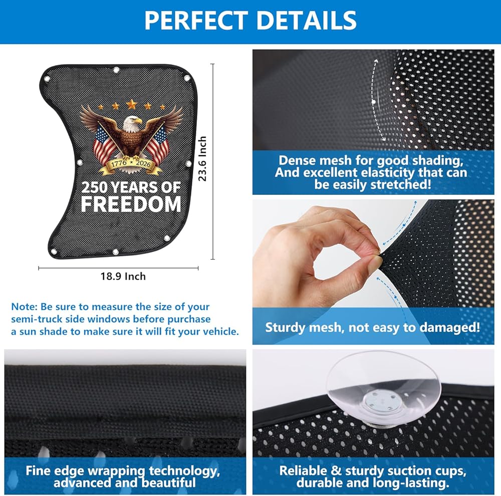 250th Anniversary Side Window Sun Shade for Semi Truck, Interior Truck Windows Shades RV Semi Truck Accessories Compatible with Freightliner, Volvo VNL, International Trucks (Black Eagle)