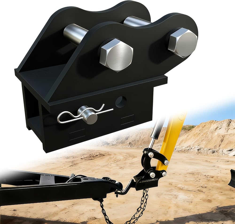 Mini Excavator Trailer Hitch Receiver Attachment with Standard 2-Inch Receiver, fits 0.8–2t Mini Excavators, 5000 Lbs Tongue & 20000 Lbs Trailer Capacity, Easy to Install, Includes Pin