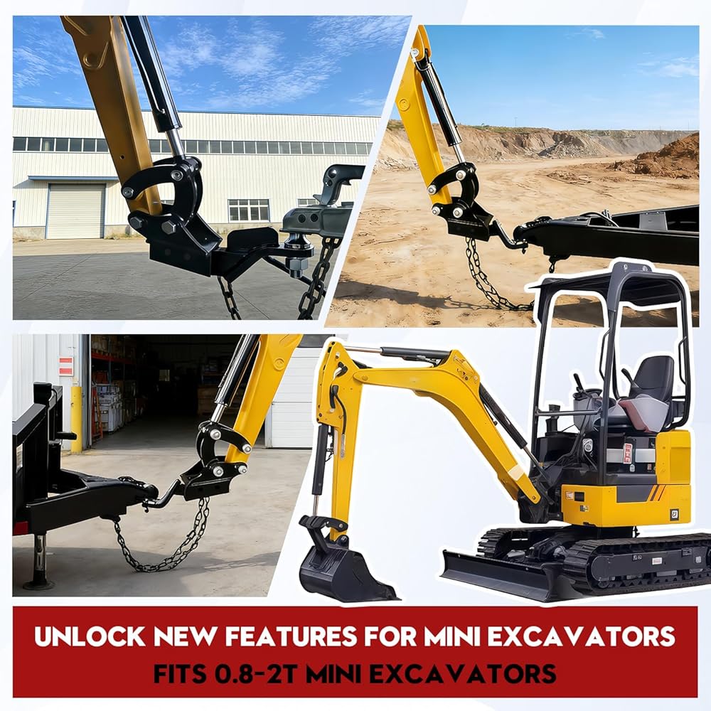 Standard 2-Inch Receiver: Equipped with a standard 2-inch trailer hitch receiver, it perfectly matches common 2-inch trailer connectors and compatible mini excavator accessories on the market. It works with thousands of ball mounts, cargo racks and other towing gear, making versatility within your reach