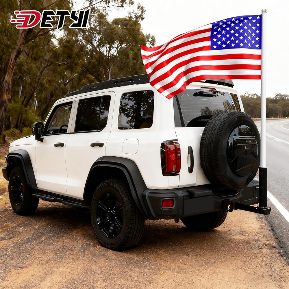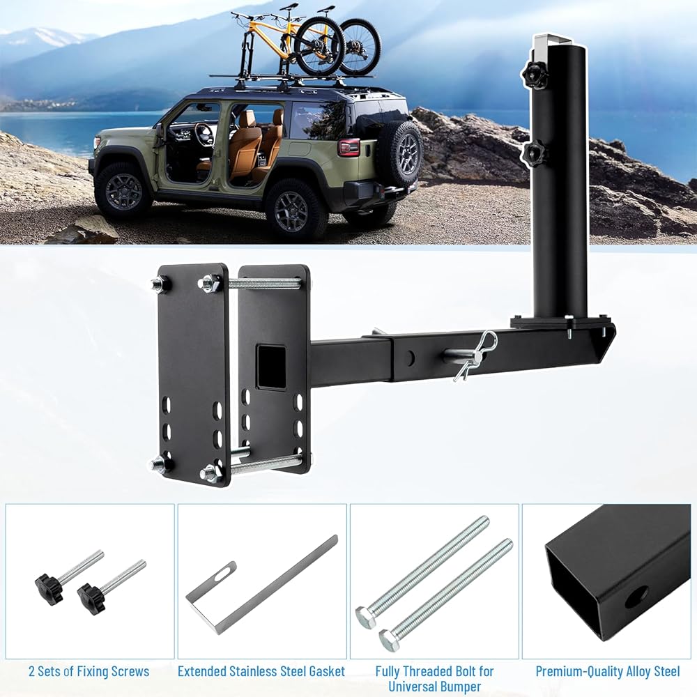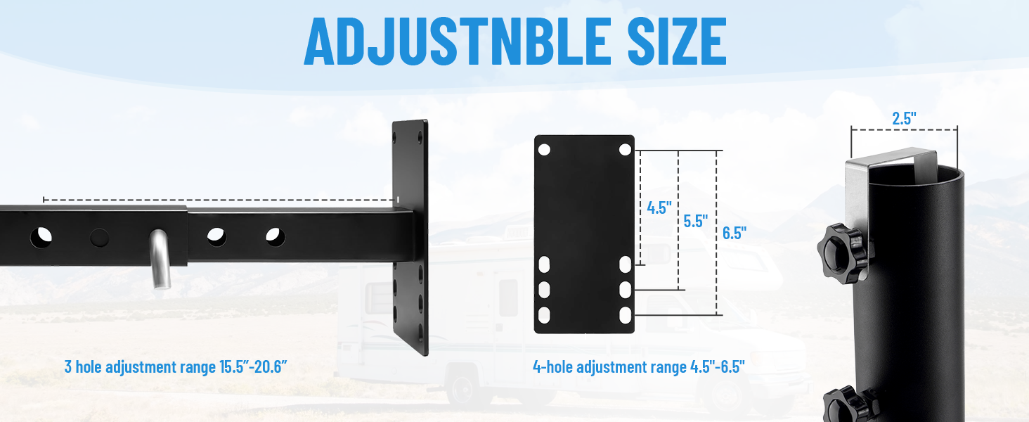 Use for Hitch Mount: Hitch mount flag pole holder compatible for any vehicle with standard 2" hitch receiver, such as trucks, JEEP, trailers, SUVs.Just remove the extension arm and only use the hitch pice & round pole holder.Adjustment length range of hitch mount is 6.4"-11.4".