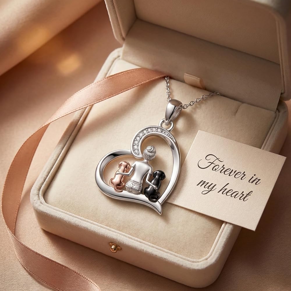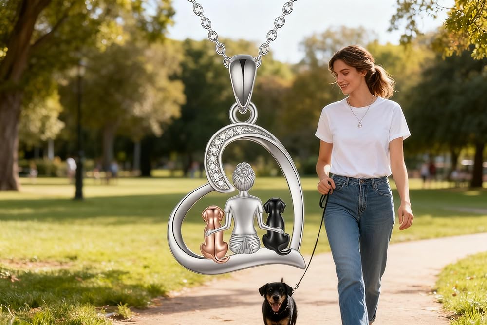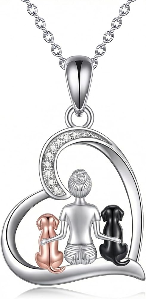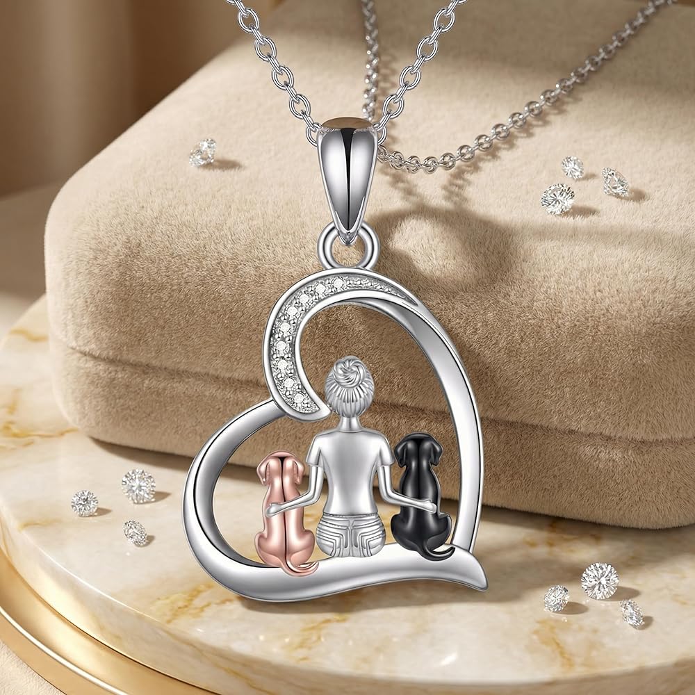 ❤Dog jewelry for women Design❤: Dog always means accompany. Two Dog Sitting beside the women on the Heart Pendant Necklace for Dog Lovers,Women , Daughter, Niece, Granddaughter, Friends or Yourself.