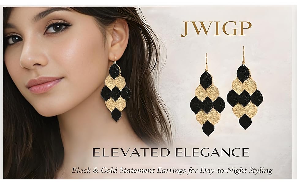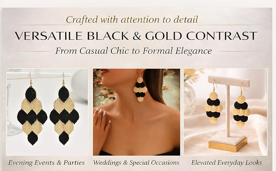 [Elegant Bohemian Design] - Featuring black and gold layered teardrop shapes, these statement earrings combine boho charm with modern elegance, perfect for both casual and formal looks.