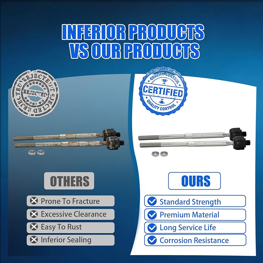 ✨【Quality Assurance & Support】Every Front Inner Tie Rod Ends undergo strict pre-shipment testing to ensure easy installation and reliable performance. Our steering tie rod ends come with a 2-year warranty. Any questions? Please feel free to contact us, and we will reply within 24 hours. Your satisfaction is our priority!