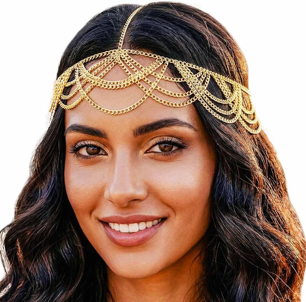 Boho head chains are unique design,and intricate chains can perfectly match with your Egyptian queen outfit, makes you more charming and confident in the crowd