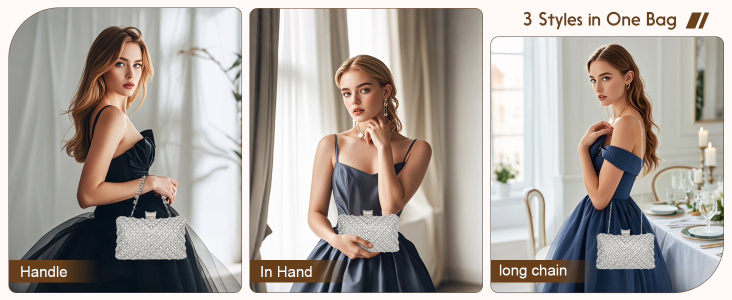 【3 Styles in 1】 It comes with 2 removable chains (long one and short one), so it has many different styles, like Clutch, Handbags, Cross-Body Bags, Shoulder Bags, Purse. You can choose the usage according to your convenience.