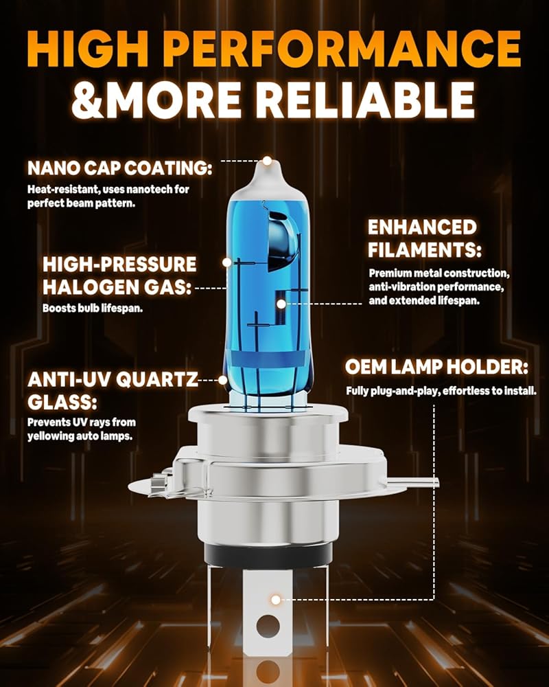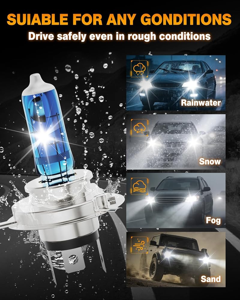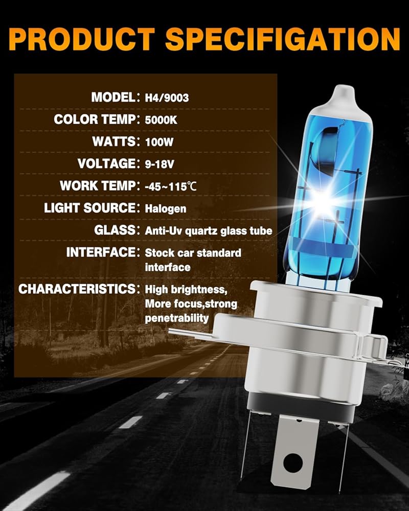 AULUXE halogen headlight bulbs boost safety and convenience for drivers. 185% brighter than standard halogen bulbs, they deliver a wider, farther field of vision—helping spot deer, wildlife, rocks, or obstacles early for safer nighttime driving. They fit both high and low beams, emit light near natural sunlight for a comfortable feel, and have strong shock resistance to stay steady on bumpy roads. Reliable in all conditions, they hold up against moisture, dust, extreme heat, and cold without losing performance. Installation is simple, and no special maintenance is needed—just regular checks and cleaning to keep them working optimally. Backed by AULUXE's quality assurance, we stand behind our products and service. Unsure about bulb compatibility with your car or your vehicle/bulb model? Contact our customer service before buying—we'll address concerns fast. Thank you for trusting AULUXE.