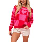 Women's Valentine's Day Heart Print Sweater Loose Crew Neck Long Sleeve Pullover Knit Tops for Date in Kuwait
