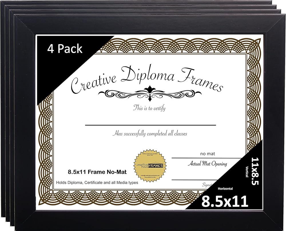 Creative Picture Frames 8.5X11Bk Black Diploma Frame, Holds 8.5 By 11-Inch Graduation Documents with Stand And Wall Hanger in Kuwait