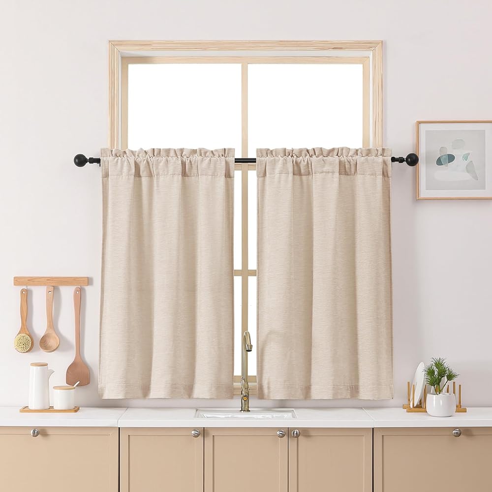 Size & Quality: Each set includes 2 panels of kitchen curtains. Each measures 30 inches in width and 30 inches in length. The top rod pocket is compatible with standard 1.5-inch curtain rods, designed for easy installation and smooth gliding. It is recommended to measure window dimensions to ensure the ideal fit
