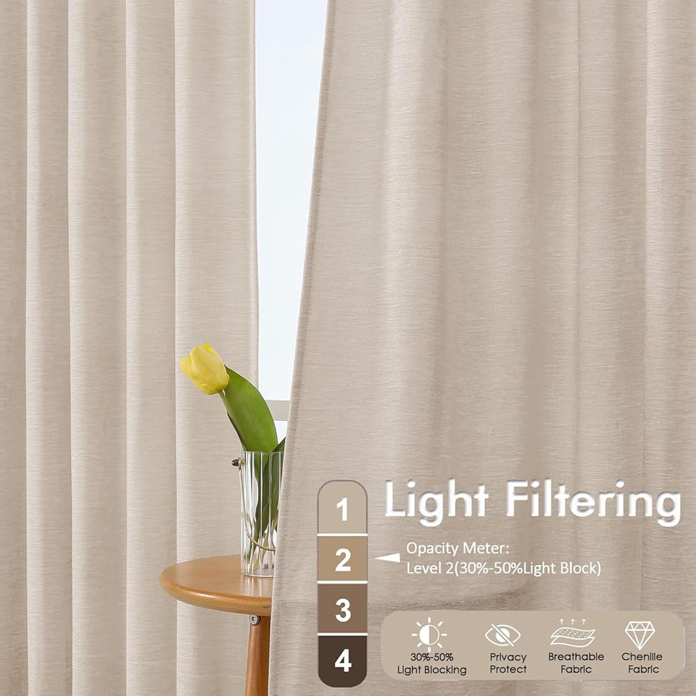 Light-Filtering Curtains: This cafe curtains achieves the perfect light transmission effect. During the day, this short curtains can transform harsh sunlight into natural light, keeping the room bright and transparent, while protecting floors and furniture from UV damage. At night, it blocks out some of the corridor lights and external views, allowing you to enjoy every moment at home with peace of mind