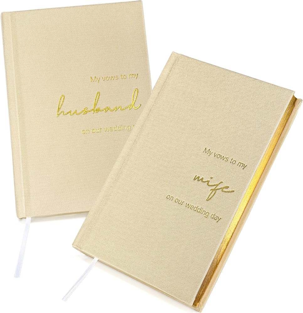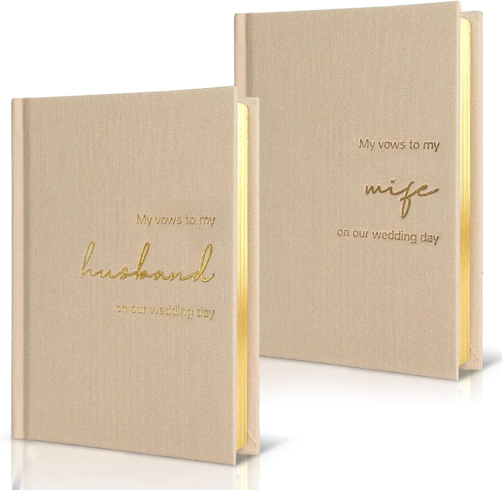 LADY&HOME Wedding Vow Books His and Hers, Linen Hardcover Gold Foil Vow Books for Ceremony, Wedding Must Haves, Wedding Registry Ideas, His and Her Gifts (Beige)