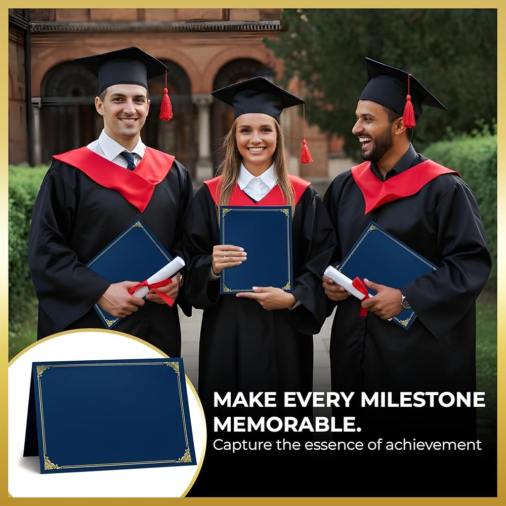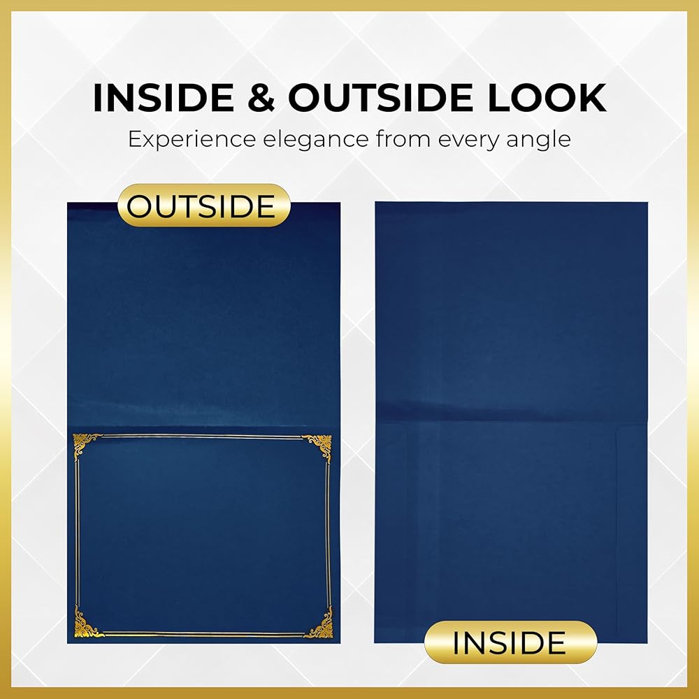 PREMIUM QUALITY: Navy blue certificate holders with elegant gold foil border, perfect for presenting diplomas, awards, and important documents