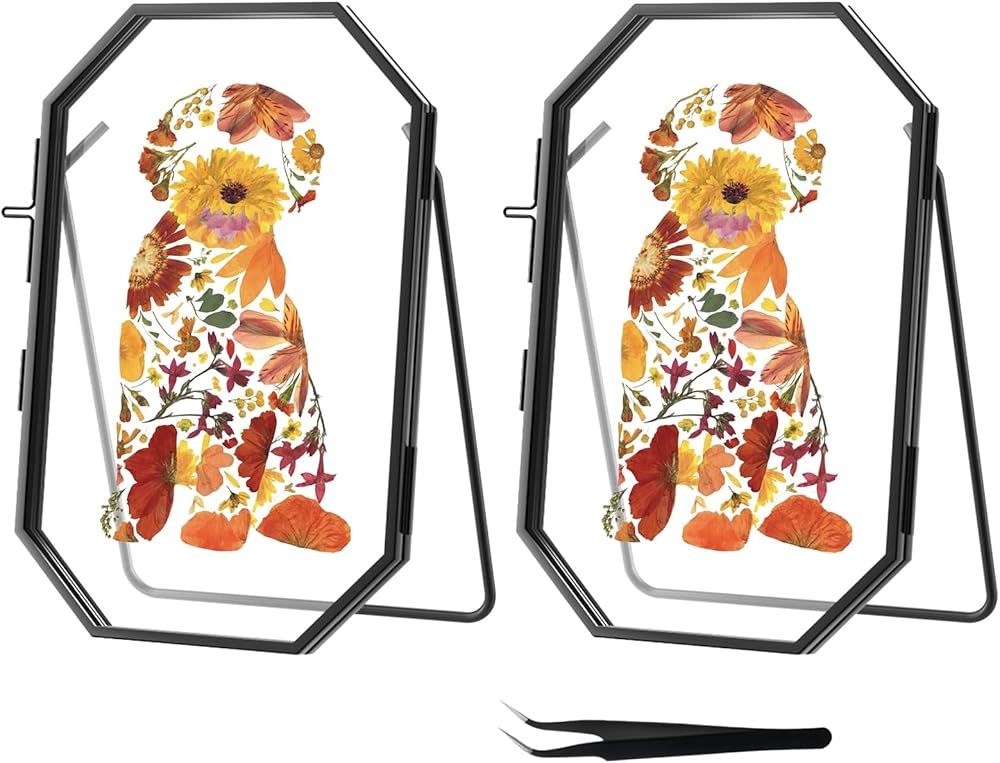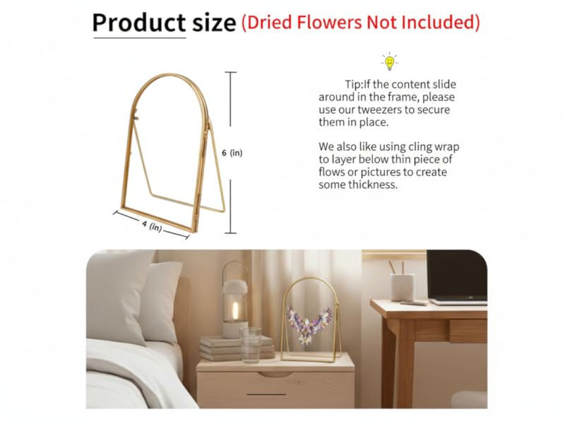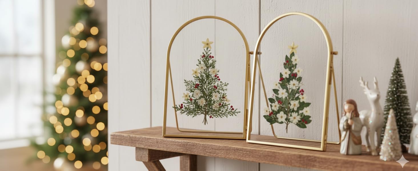 Double Folding Standing Frame: Made from high-quality brass with high-definition glass, this double-sided pressed flower frame showcases embossed pressed flowers for a refined touch. The flexible hinge allows for easy angle adjustment, offering versatile display options. Perfect for both home and office, it brings a modern, elegant charm to any deskdesktop or bookshelf.(FRAME ONLY, NOT INCLUDING DRIED FLOWERS)