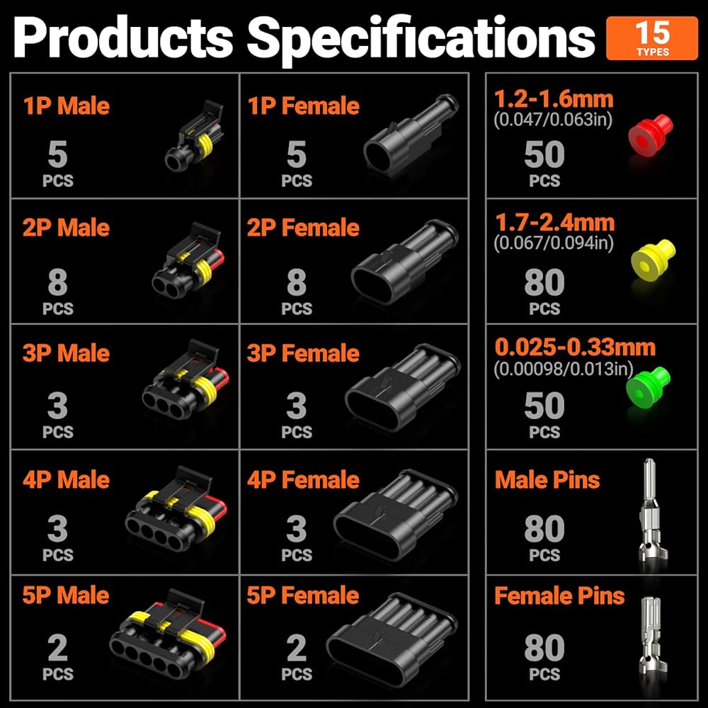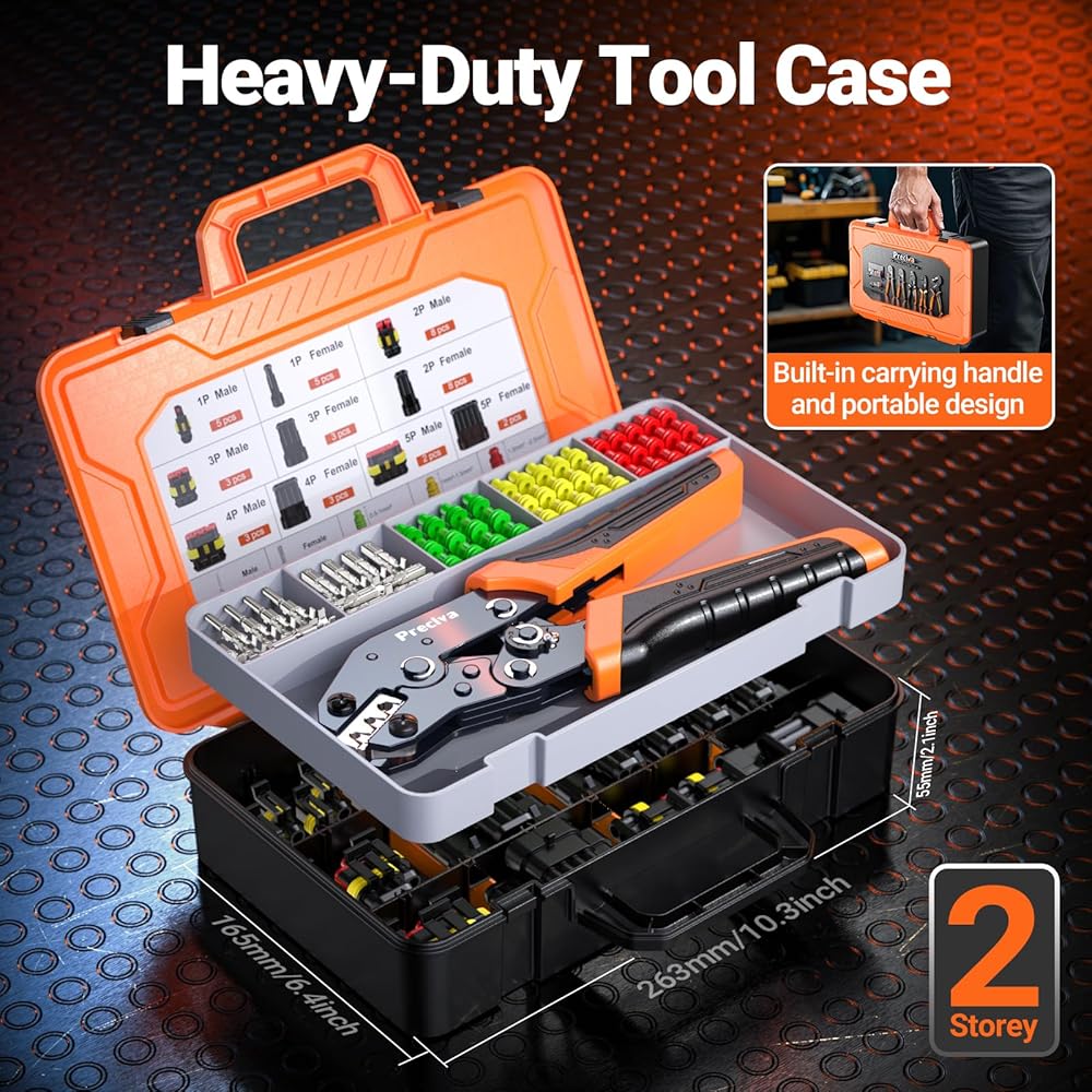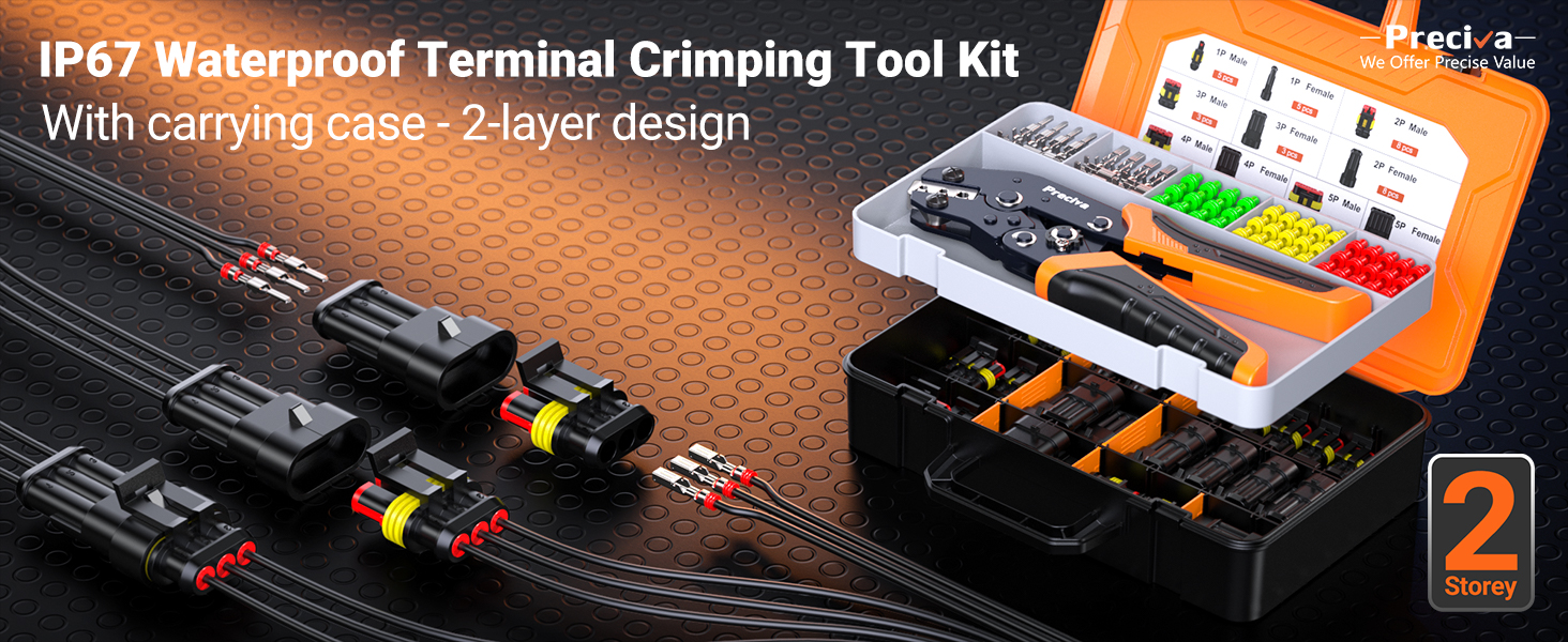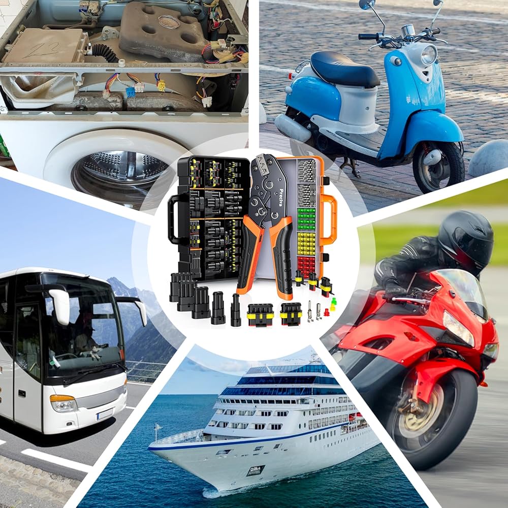 💪 Preciva 382Pcs Waterproof Automotive Electrical Wire Connectors with Ratcheting Wire Crimper, 1/2/3/4/5 Pin Plug Connectors Kit Water proof Connector