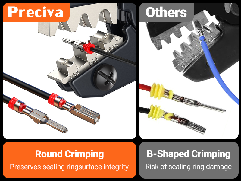 ✅ Enhanced Waterproof Protection:Unlike most B-shaped crimp terminals on the market, our round terminal design protects the waterproof gasket from damage, providing superior IP67 waterproofing and longer connector life.