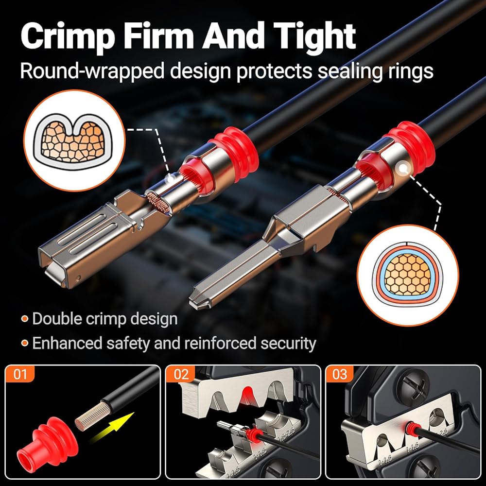 🧳 Portable Storage Box + Ergonomic Handle Upgrade:Comes in a durable, compartmentalized carrying case for easy organization. The crimping tool features a new anti-slip handle, providing better grip and comfort during long wiring sessions.
