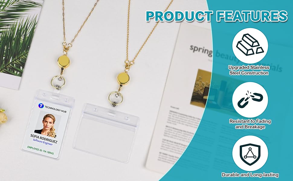 Durable Premium Material: The gold lanyard with id holder features high-quality gold stainless steel construction. It resists rust and fading, delivers long-lasting performance and reliable use for daily needs.