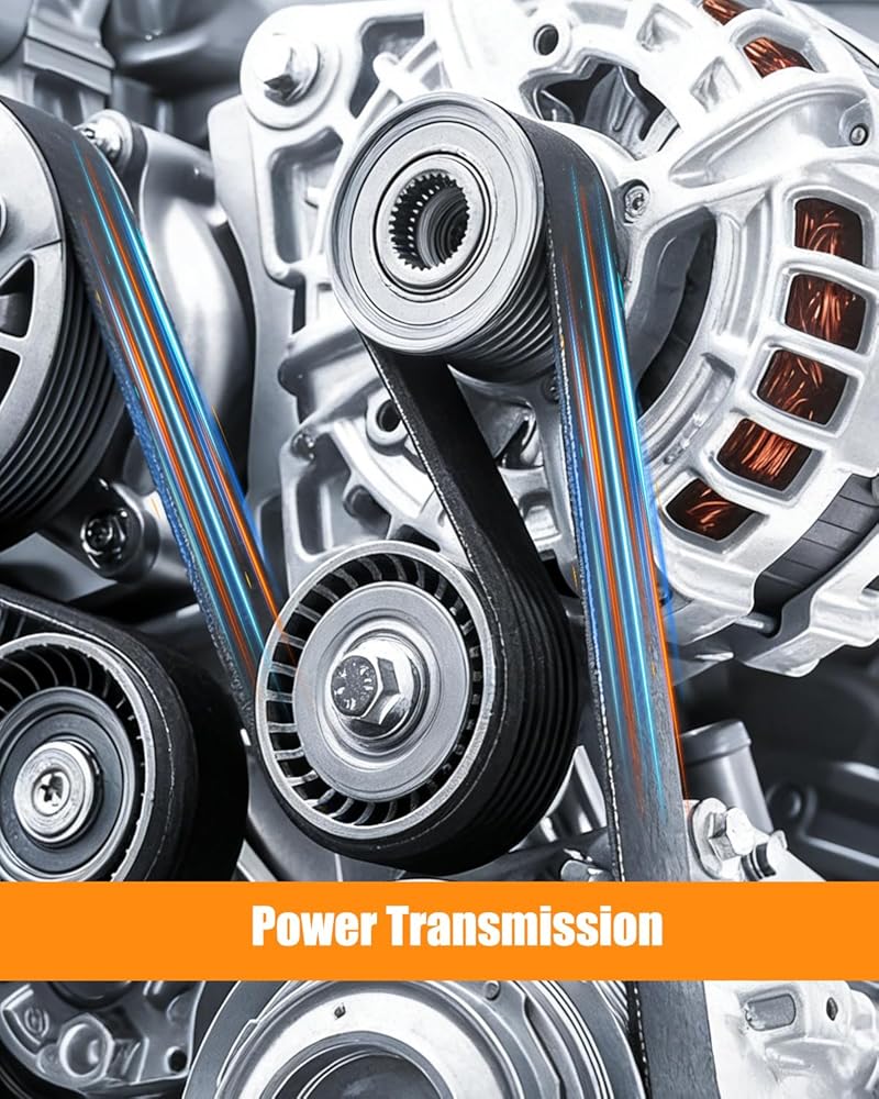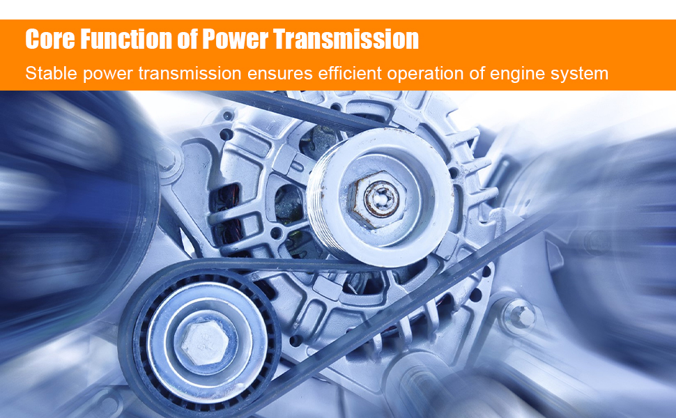 Power Transmission: Belt drives critical components such as alternator, ensuring normal operation of power supply, cooling, and steering systems during vehicle operation, is vital transmission component of engine accessory system