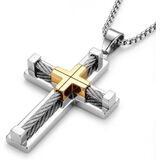 Unique Cross Necklace for Men : You will receive a stainless steel cross necklace with a twisted rope design and a small 14K gold-plated cross in the middle for a more layered look. This cross pendant necklace subtly blends classic religious elements with an edgy industrial style, creating a unique look that balances tradition and modernity