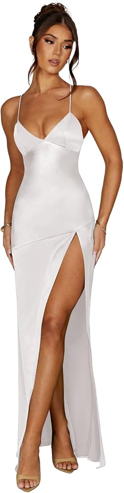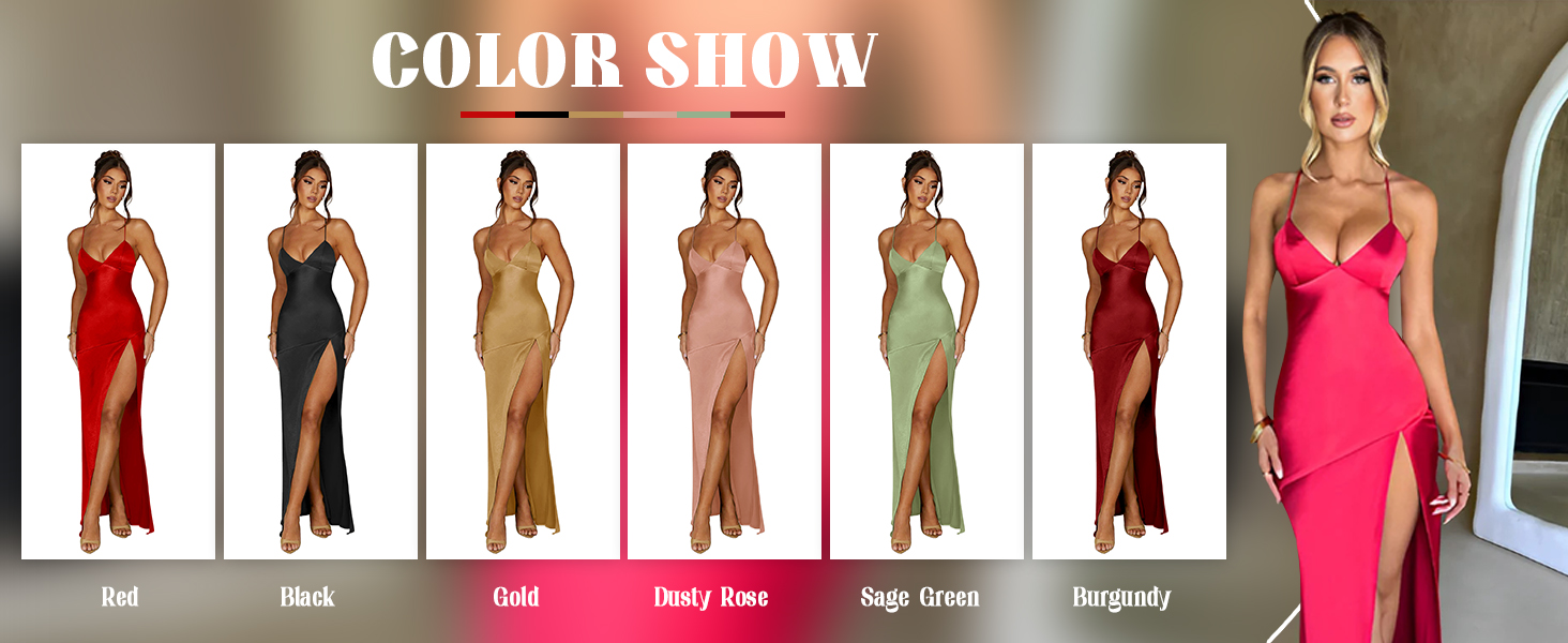 Product Detail: This Elegant Silk Dresses Features V Neck,Spagehtti Straps,Corset Bodice,Halter,Mermaid,Bodycon,High Slit,Built-in-Bra,Lace up Back,Floor Length,Full Lined.