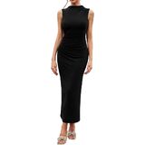 Sleeveless Mock Neck Design: The elegant cocktail dress features a simple sleeveless design paired with a stylish mock-neck/round neck, creating clean and crisp lines that are both elegant and modern. The long, fitted silhouette elongates the body proportions, making the overall look taller and slimmer, making it a classic fashion item in your wardrobe.