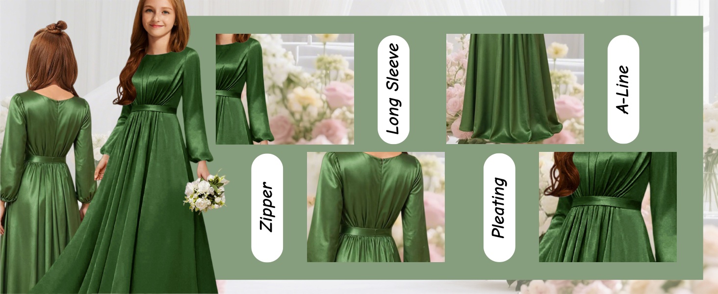 Desgin: This junior bridesmaid dresses for teen girls is made of satin, Scoop Neck girls formal dresses , satin long flower girl dresses for wedding , junior bridesmaid dresses a-line,long pleated bridesmaid dresses for girls , long sleeve prom dresses for teens floor length , pleated junior dresses for teen girls formal,your little princess will be excited about this gorgeous satin dress.