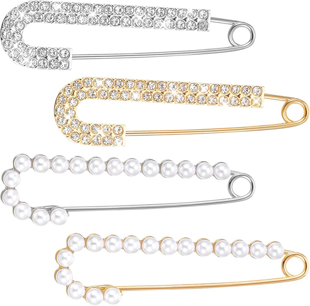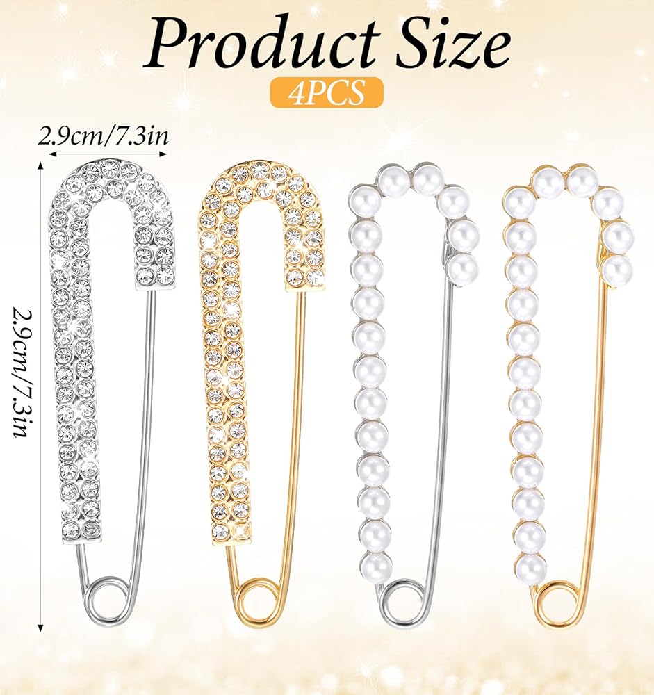 Exquisite Design - Our shawl pin feature a unique design with inlaid imitation crystals and pearls, available in gold and silver, adding chic glamour to any outfit;