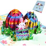 CUTE 3D EASTER BUNNY AND EGG DESIGN: This Easter pop up card features a cheerful bunny surrounded by colorful Easter eggs and spring flowers. When opened, the detailed 3D scene pops up to create a fun and exciting surprise for kids.