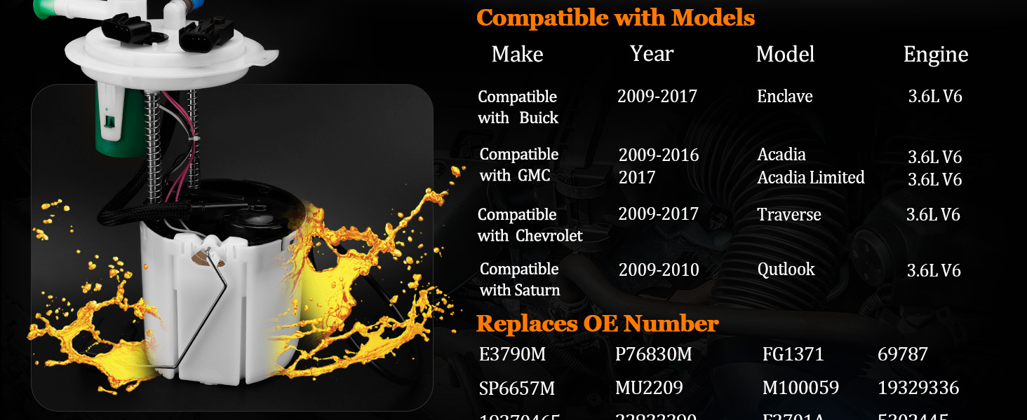 Premium quality: Oklpf electric fuel pump assembly has undergone a number of professional tests to ensure reliable operation and consistent fuel delivery. Each fuel pump module assemblies are made of premium quality materials to enhance your vehicle's performance, increase acceleration,improving fuel efficiency,reduce vibration, noise,etc