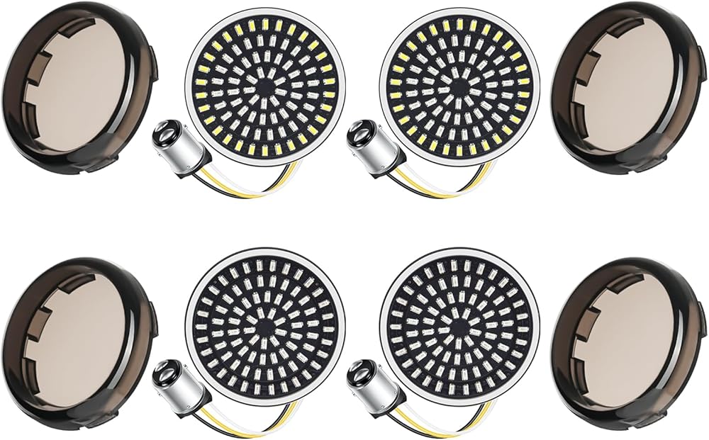 【WHAT YOU WILL GET】You will receive 2 front and 2 rear turn signals fit for harley and 4 smoked lens covers. NOTE: ①Some models may require a load equalizer to correct fast blinking. ②Confirm your motorcycle's model and year before ordering.